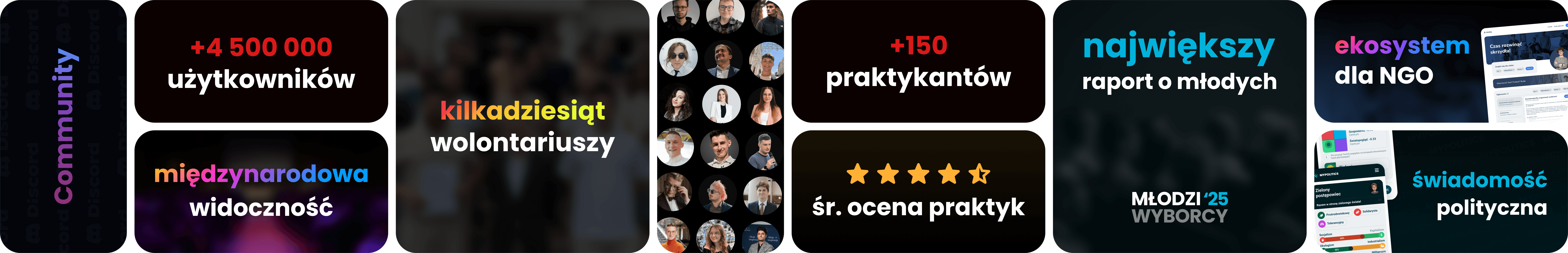 W ramach wolontariatu mam przyjemność rozwijać szeroki zakres umiejętności, od publicznych przemówień, przez zarządzanie ludźmi, aż po prowadzenie praktyk, code review i doskonalenie wiedzy technicznej w tworzeniu oprogramowania.