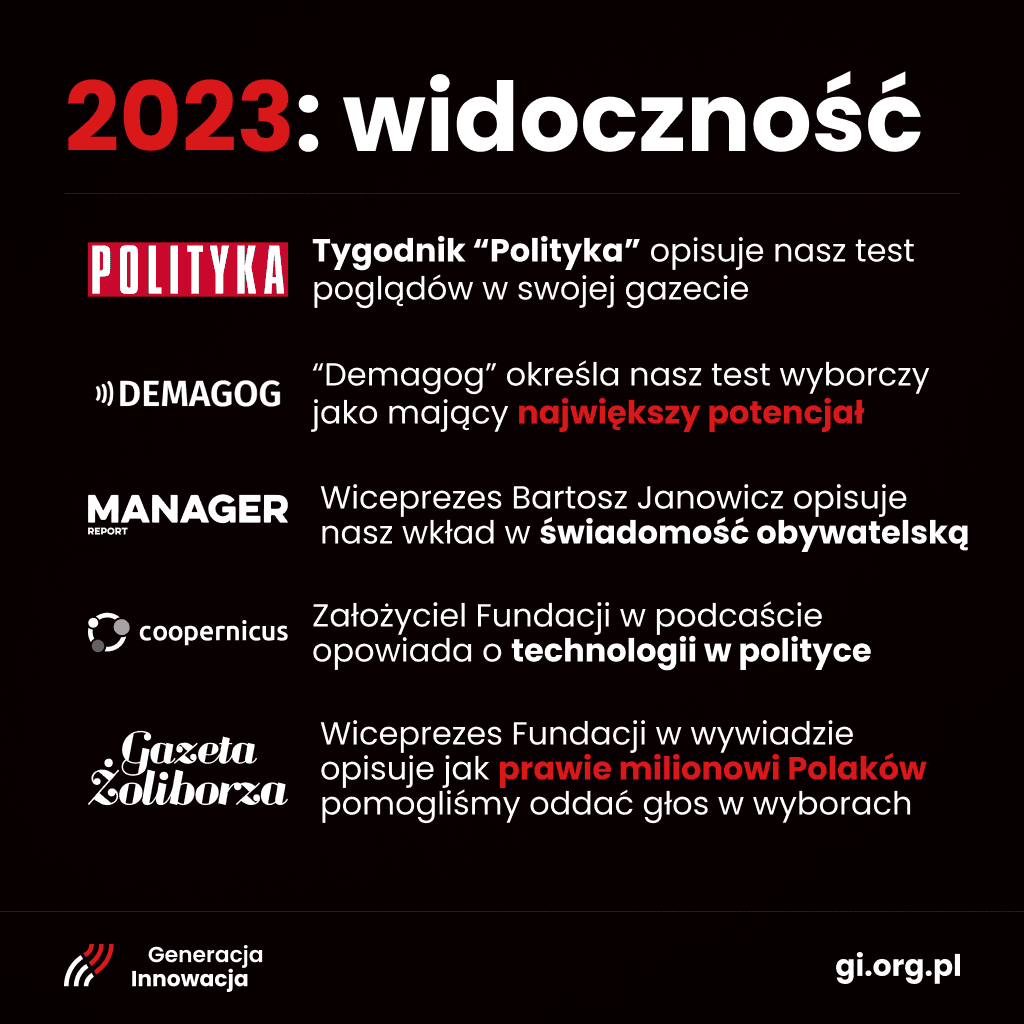 👉 Pojawiliśmy się na łamach Tygodnika Polityka, Demagoga, Manager Report, Coopernicus i Gazety Żoliborza